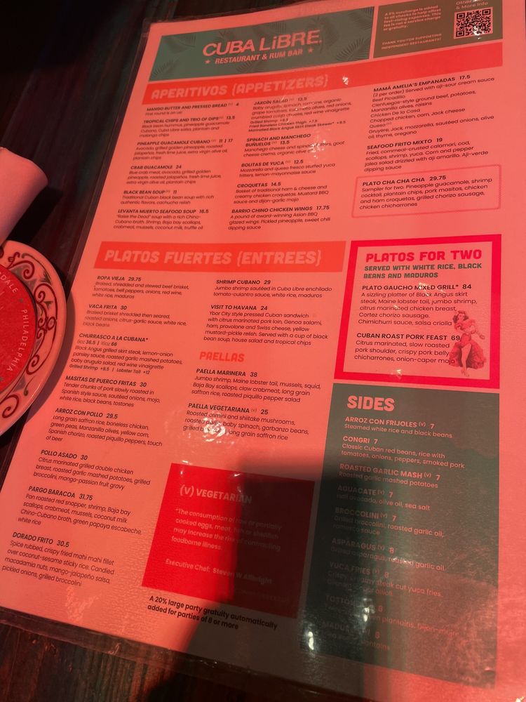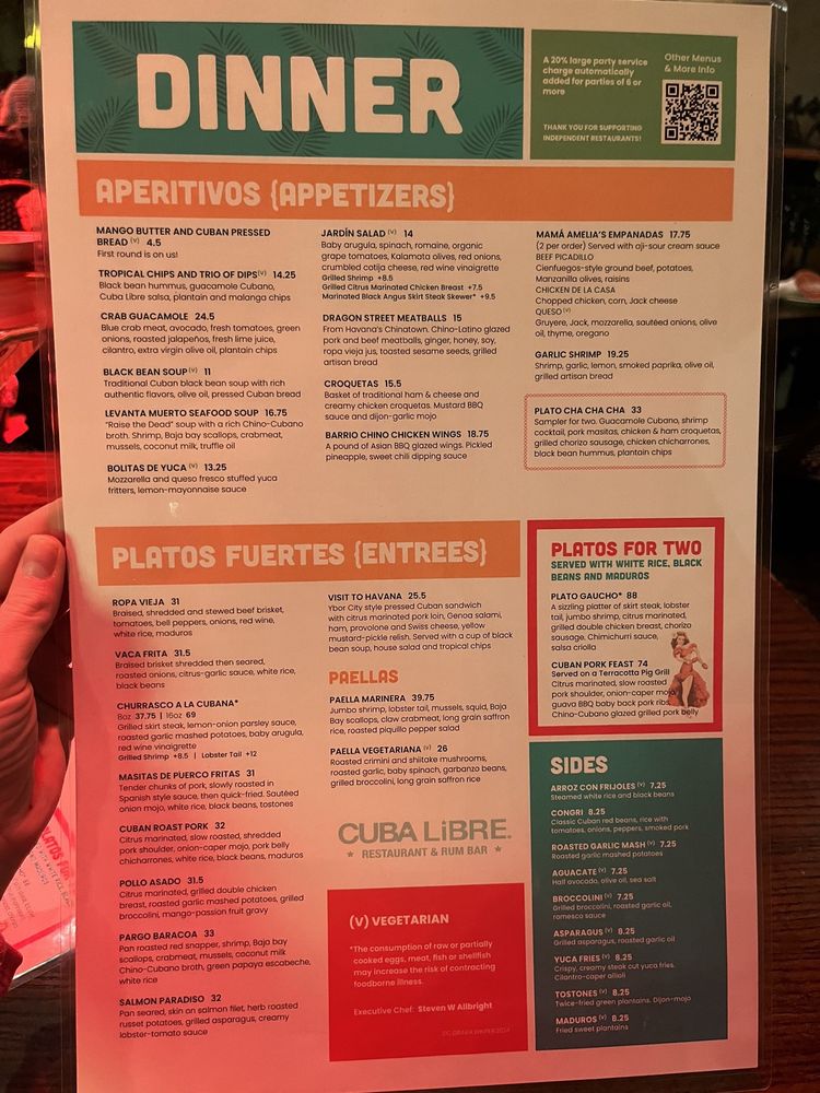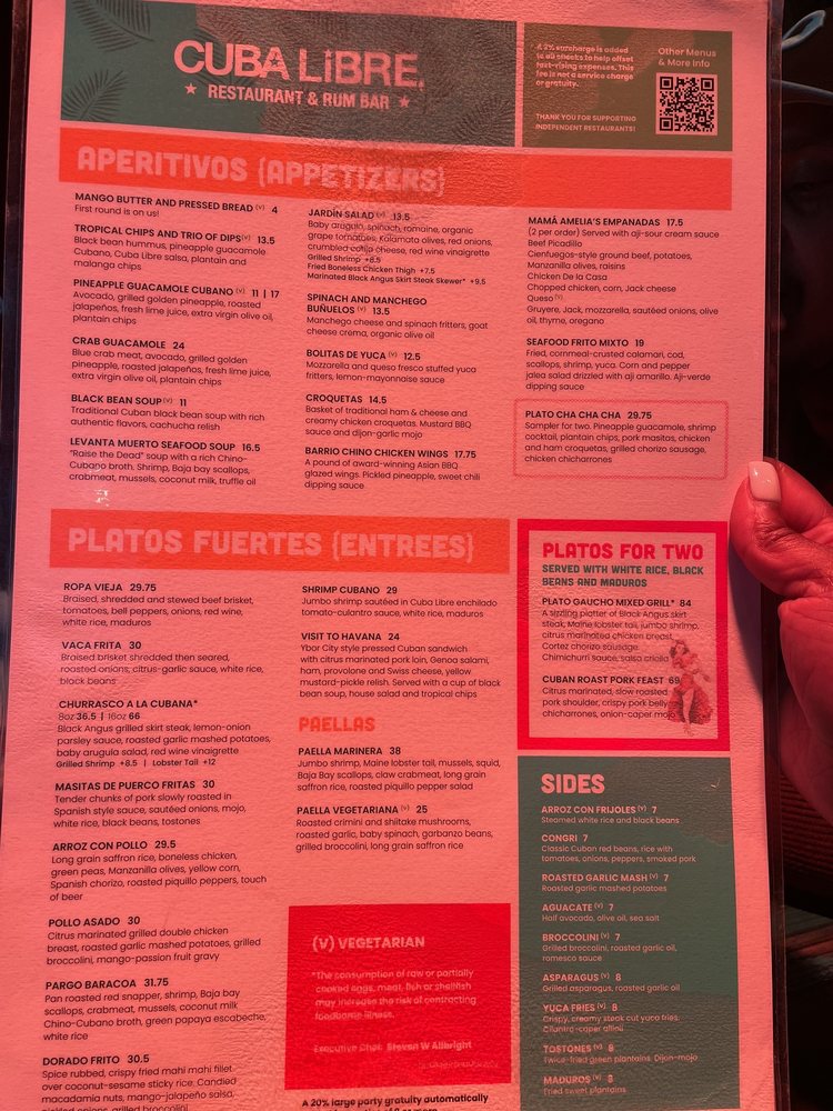 Cuba Libre, located in Washington, DC, is a vibrant Cuban-Latin American restaurant and dance club that offers a unique dining experience. With a diverse menu featuring Pescatarian, Vegan, and Vegetarian options, there is something for everyone to enjoy. The restaurant is wheelchair accessible and offers various amenities such as outdoor seating, waiter service, and free Wi-Fi. The lively atmosphere, especially on Thursday, Friday, and Saturday nights, makes it a great spot for dinner and dancing. Customer reviews praise the happy hour specials, flavorful drinks like the passion fruit margarita, and delicious dishes such as the Ropa Vieja and yuca fries. Cuba Libre's Latinx-owned status and commitment to sustainability with plastic-free packaging and reusable tableware add to its appeal. Visit Cuba Libre for a taste of Cuba and Miami in the heart of DC.